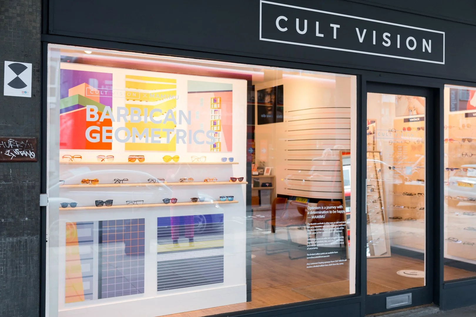 MAMIMU took over the window of Barbican-based CULT VISION with 5 original limited edition prints inspired by geometrics and the Brutalist Aesthetic in the Barbican.