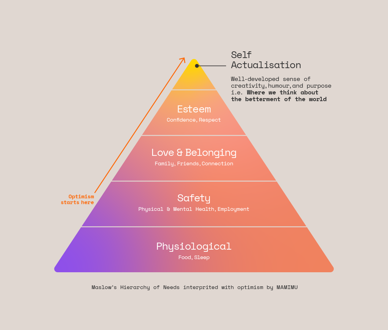 I am a firm believer that to make the world a better place, we need to start from our own wellbeing. Why? In Maslow’s Hierarchy of Needs, the first and second tiers are physiological needs and basic safety. It’s essential to ensure you have enough sleep, stay hydrated, and maintain good mental health before considering the betterment of the world.