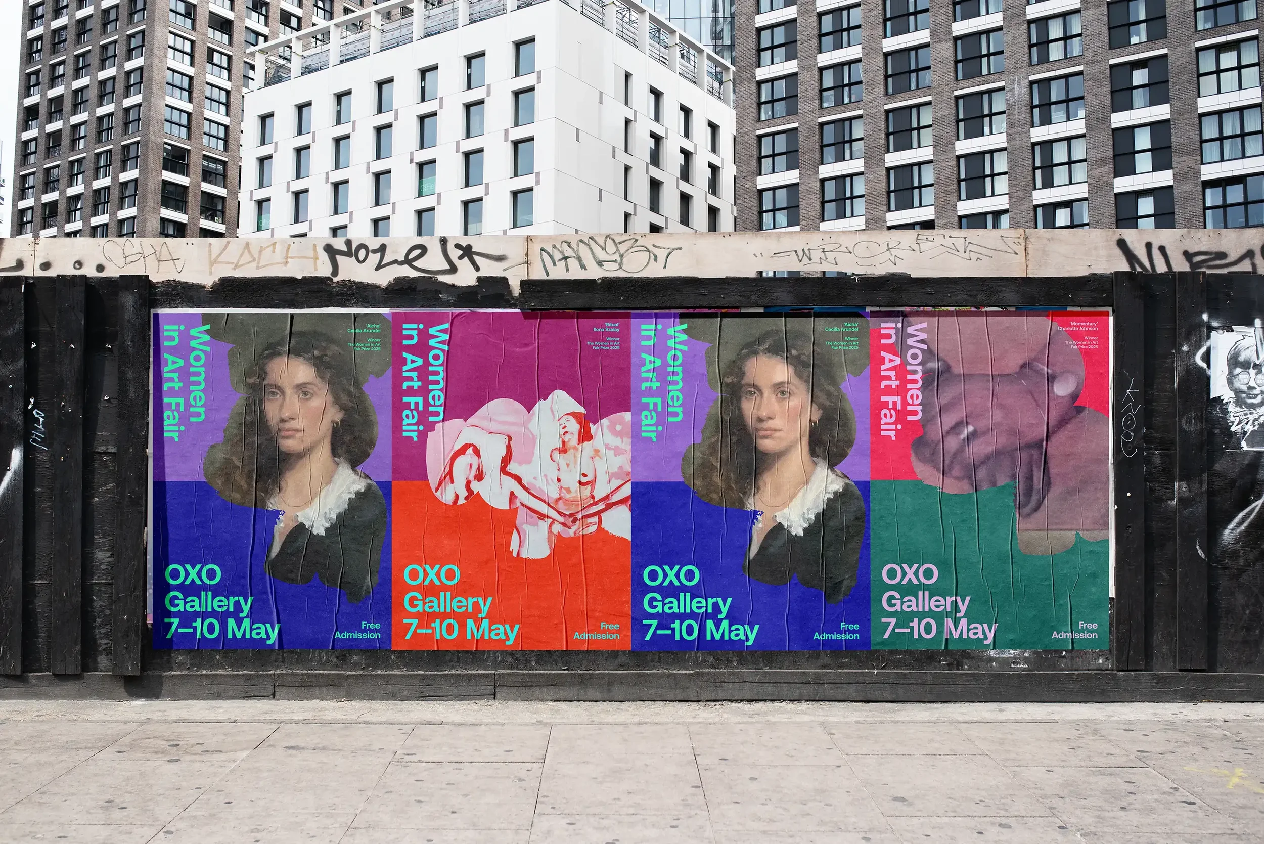 The colour palette is inspired by summer, when the fair takes place: aqua blue, neon green, berry red, sunshine orange, and many more. The vibrant, expansive palette visually represents "all art by all women", celebrating diversity and empowering all women artists.